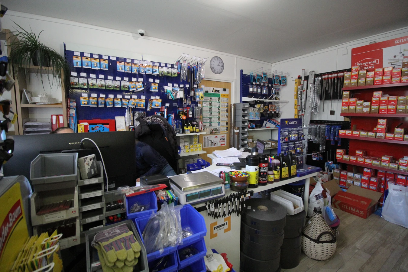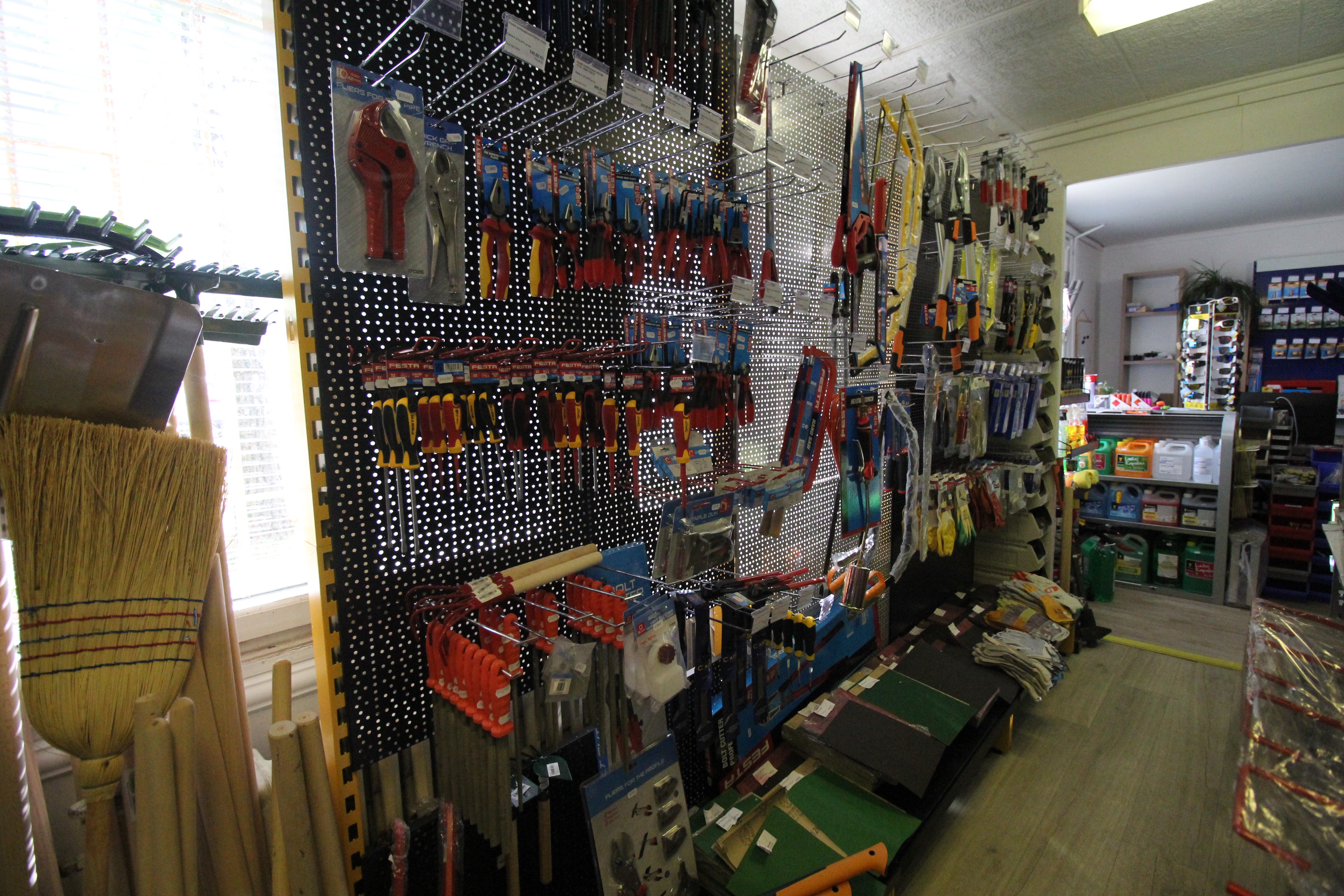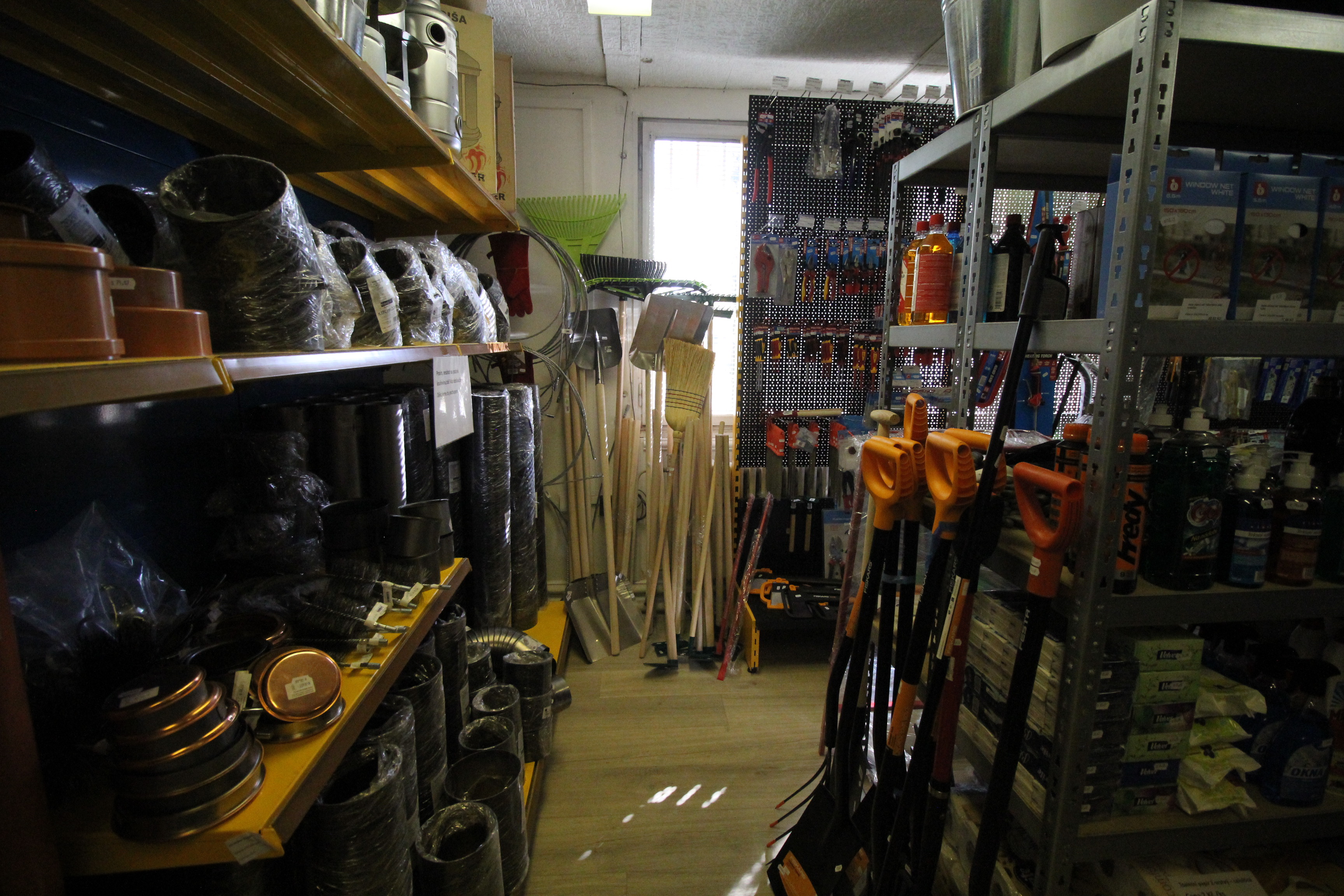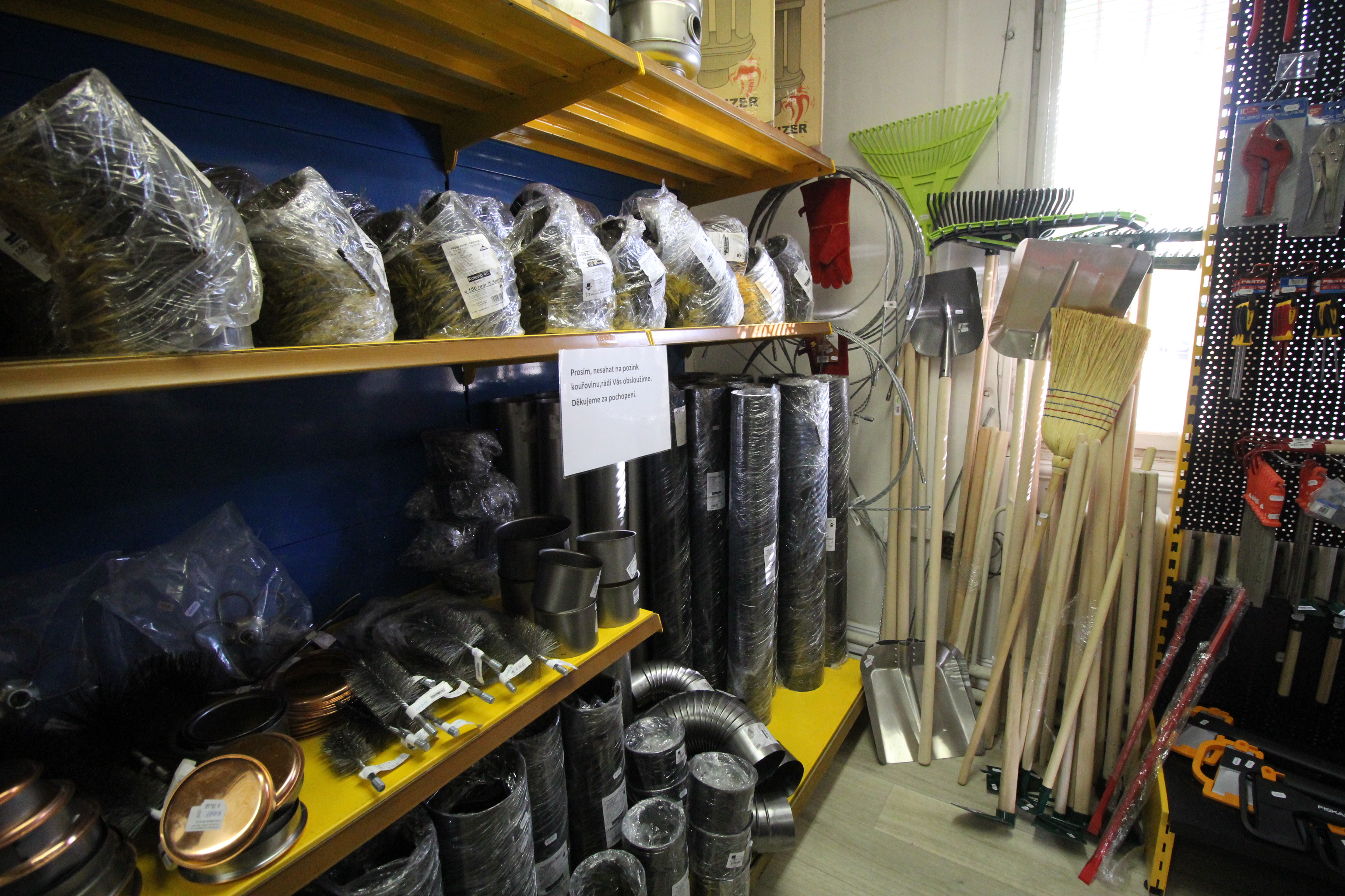 Obsahuje široký sortiment nářadí a doplňků pro opravy a stavbu.